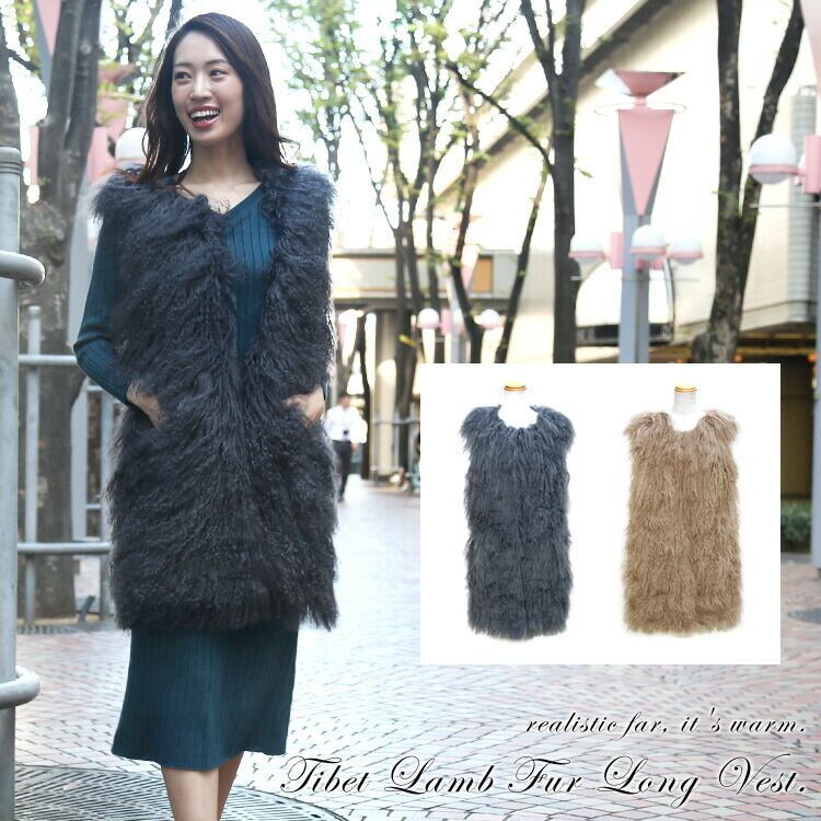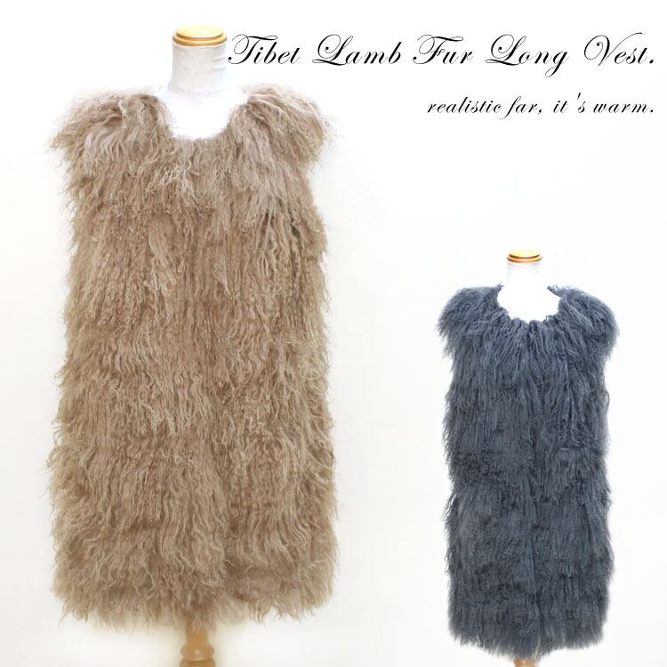 チベットラム ファー ロングベスト 送料無料 レディース ギフト プレゼント リアルファー ロング丈 ベスト