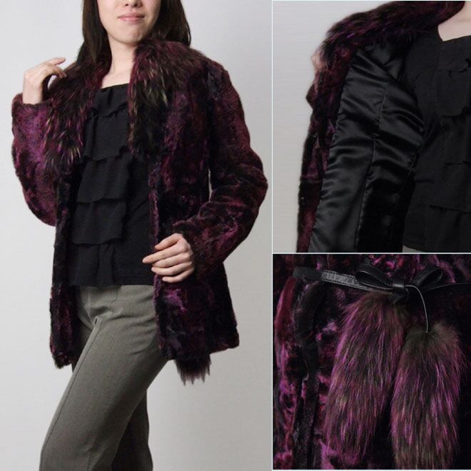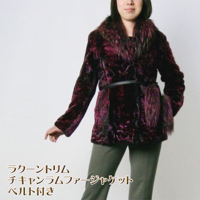 ラクーントリム チキャンラム ファー ジャケット レッド ベルト付 送料無料 レディース ギフト プレゼント YE2327