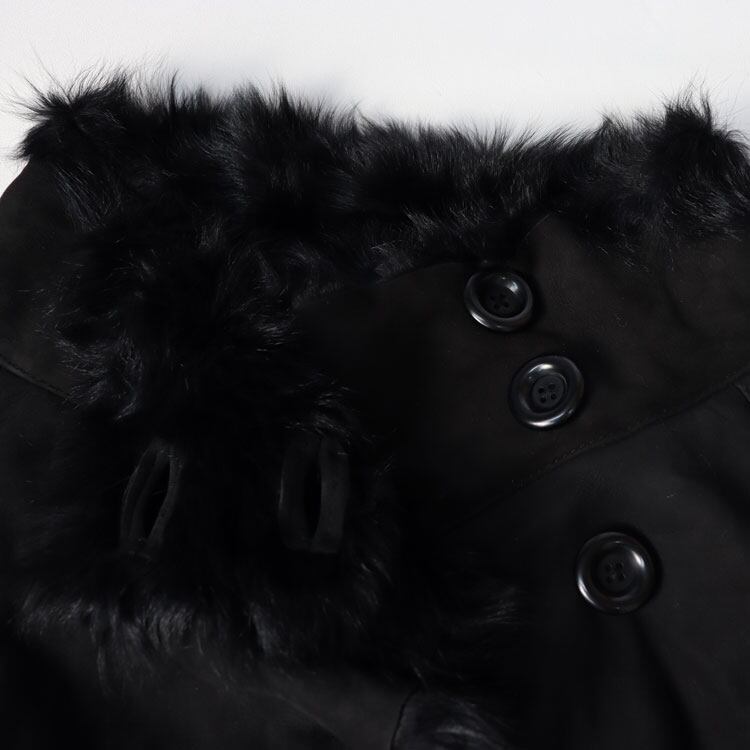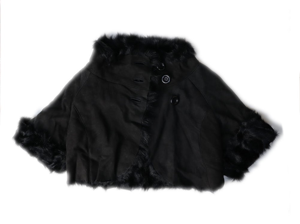 チキャンラムを使用したボレロ風のショート丈ジャケットです。内側は全面に柔らかなファーのWフェイス仕様でとても暖か。一見ケープの様にも見える、可愛らしく個性的なデザインで目を惹きます。大きなボタンがポイント。重心を上にもっていくことでスタイルアップ効果も期待できます。短めの袖でロンググローブとの相性も◎
