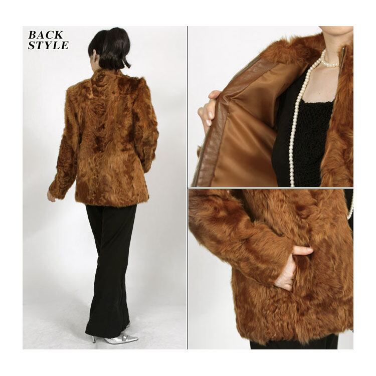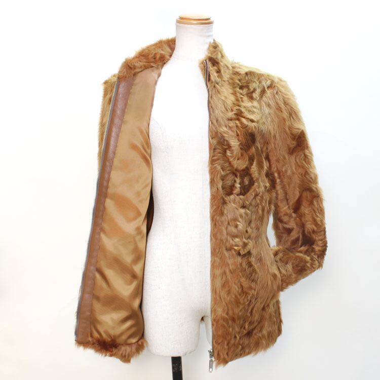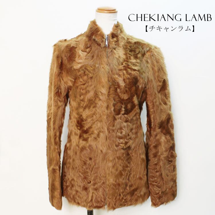 YE342CACO1036 【訳あり】 チキャンラム ジップアップ ファー ジャケット スタンドカラー コニャック 送料無料 レディース ギフト プレゼント
