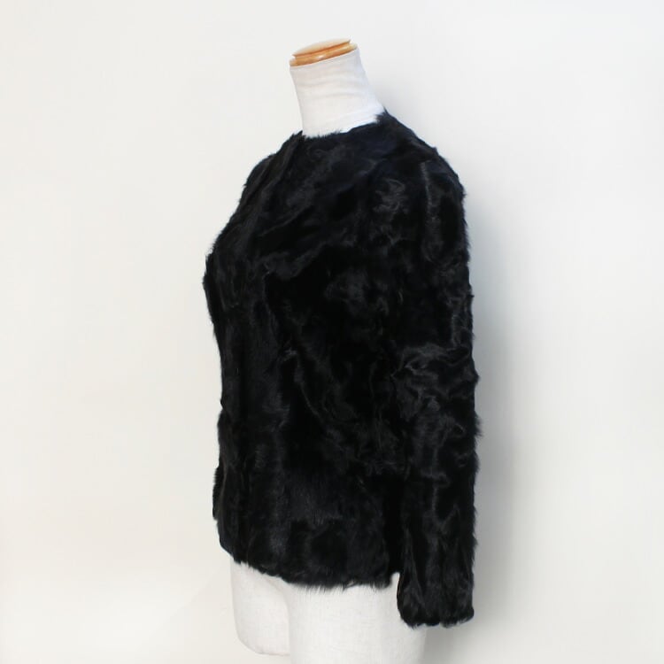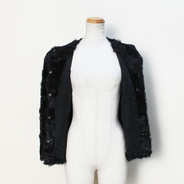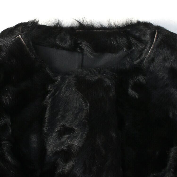 YE361BABK1037 チキャン ラム ファー ノーカラー ジャケット ブラック 送料無料 レディース ギフト プレゼント パーティ 7分丈 9分丈