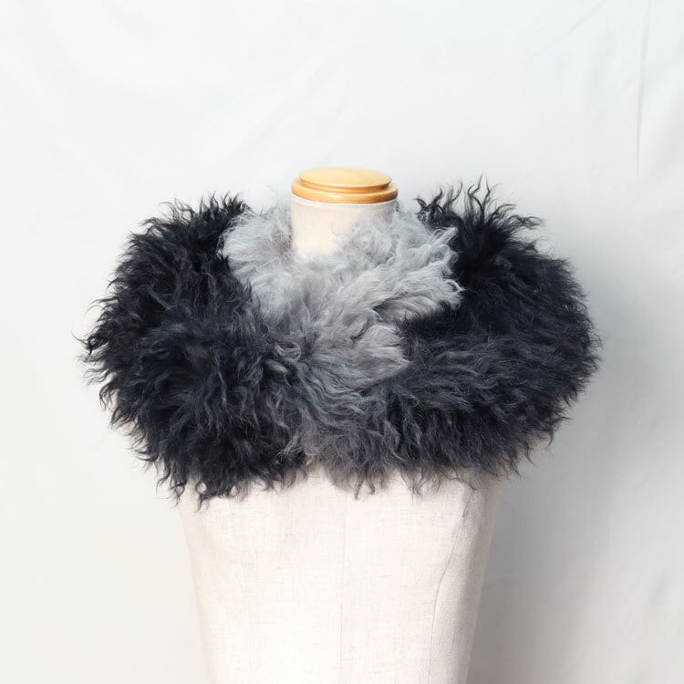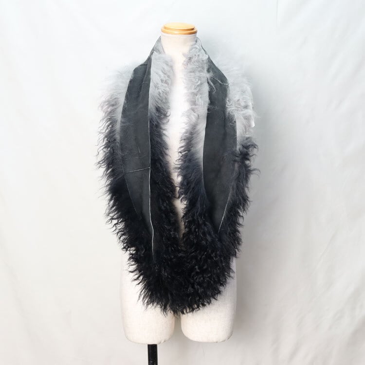 ふわふわのラムを使用したスヌードマフラーです。表と裏を、同じ1枚革を使用したラムファー面とラムレザー面のWフェイス加工。そのまま垂らしてオシャレに、2重に巻いて暖かく、アレンジ自由にお使いいただけます。