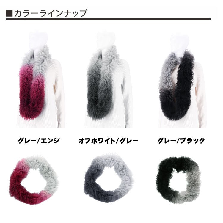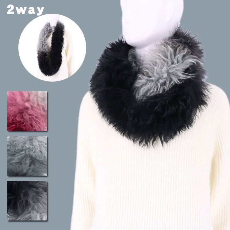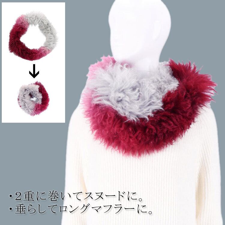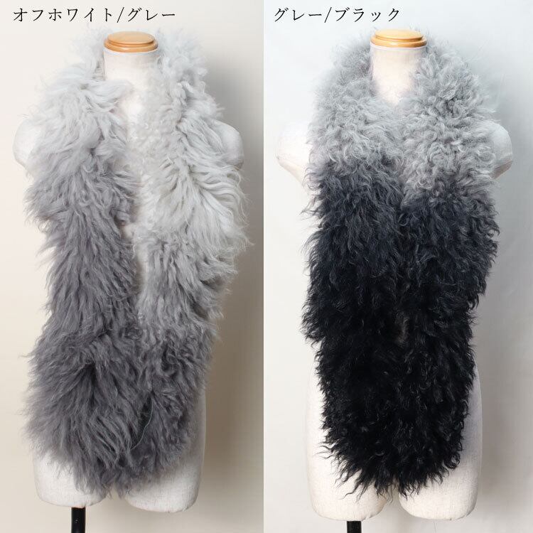 ラム ファー Wフェイス グラデーション ロング マフラー スヌード スエード レディース ギフト プレゼント グレー ブラック エンジ YE5691