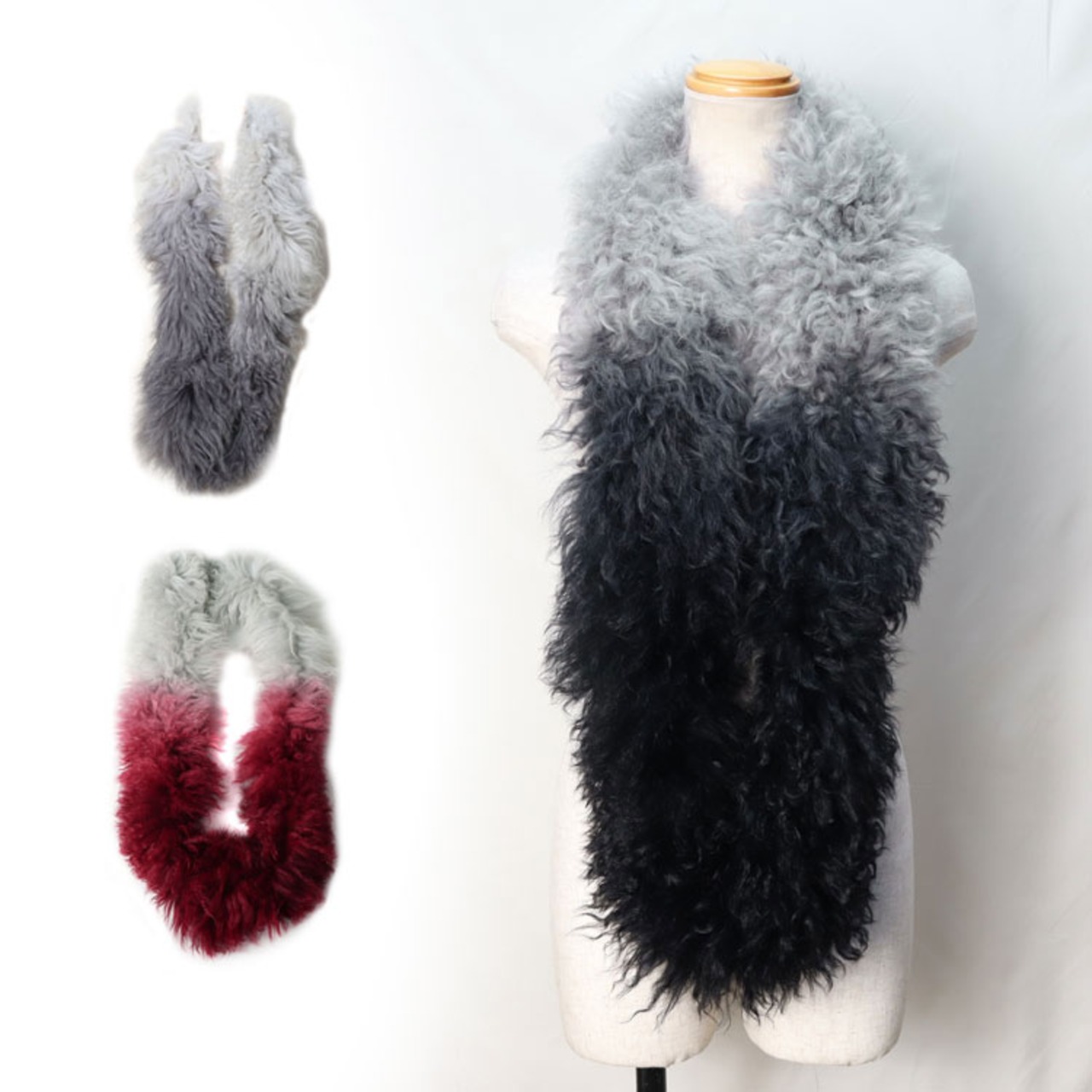 ラム ファー Wフェイス グラデーション マフラー スヌード スエード ロング レディース ギフト プレゼント