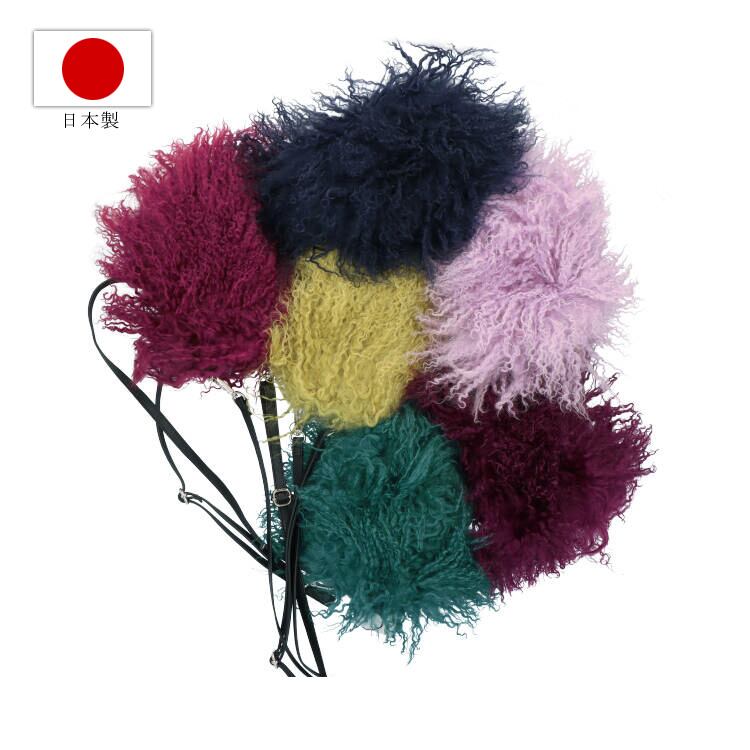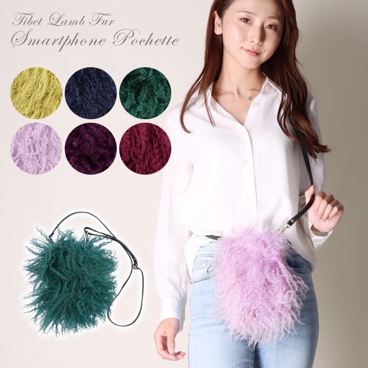日本製 チベットラム ファーバッグ スマホポシェット ショルダーバッグ ラム ファー バッグ スマートフォン ポシェット くるくる ビビッドカラー かわいい レディース ギフト プレゼント YESTC2