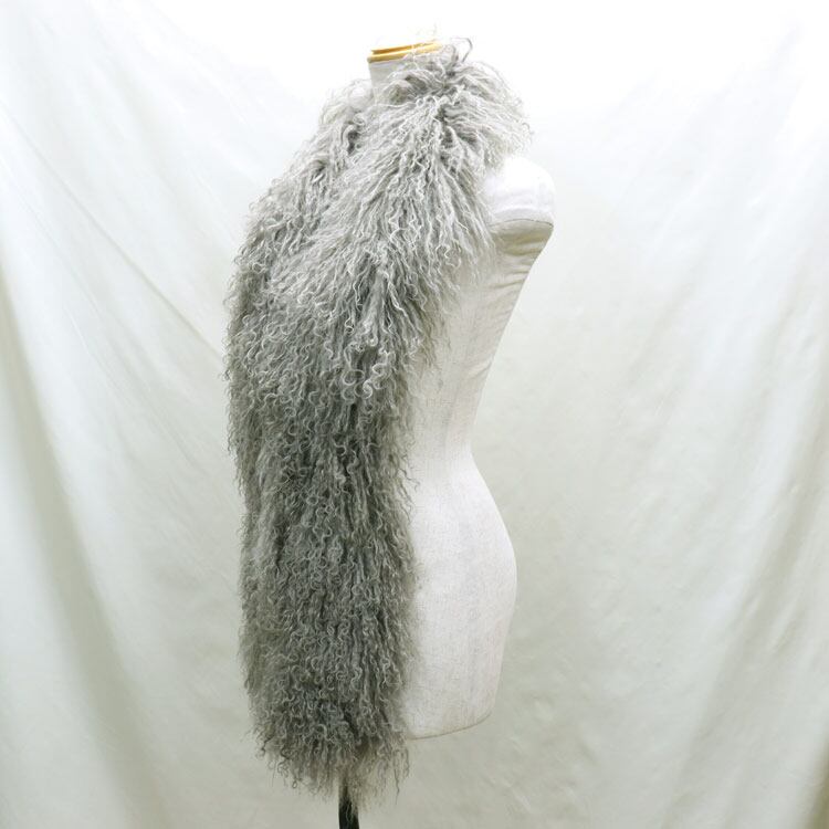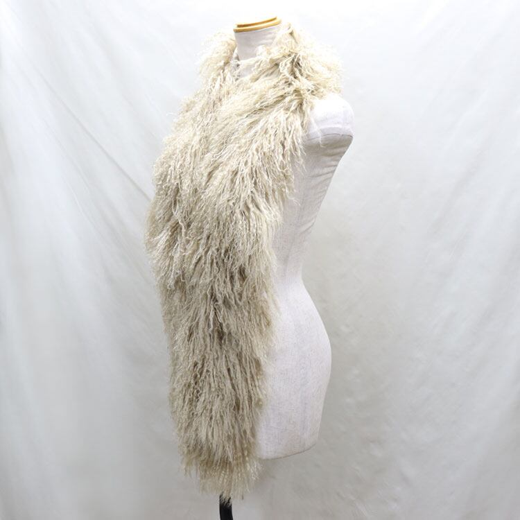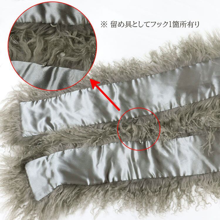 【サイズ(最大部を計測)】毛を含む全長約180cm 幅約22cm / 裏地のみ全長約160cm 幅約10cm 【重さ】約200g 【留め具】ホック1箇所 【裏地】有り 【素材】チベットラム