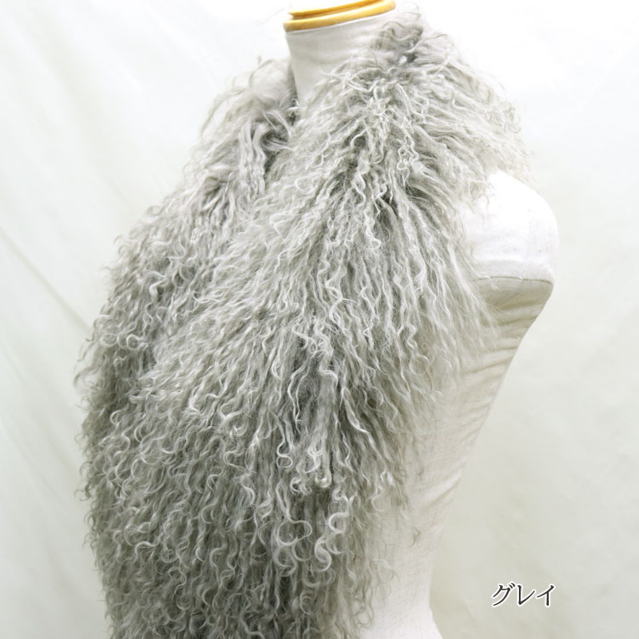 ラムの中でも特に毛足が長く、くるくるとしたカールが特徴的なチベットラムを使用しました。ボリュームがあり、カジュアルな雰囲気にもピッタリです。