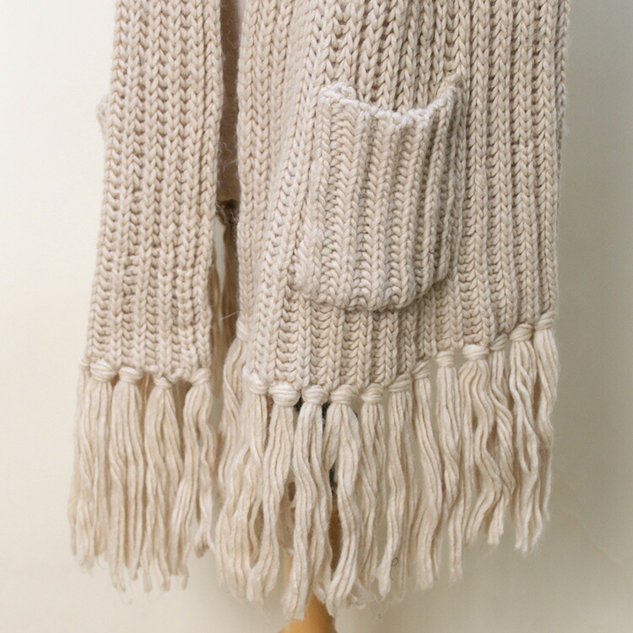 【サイズ(最大部を計測)】肩幅約30cm 着丈約74cm 身幅約85cm アームホール約64cm フリンジ長さ約15cm 【重さ】約545g 【ポケット】外側×2 【留め具】無し 【裏地】一部箇所有り 【素材】チベットラム、アクリル、ウール