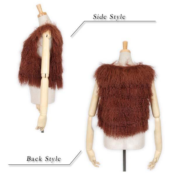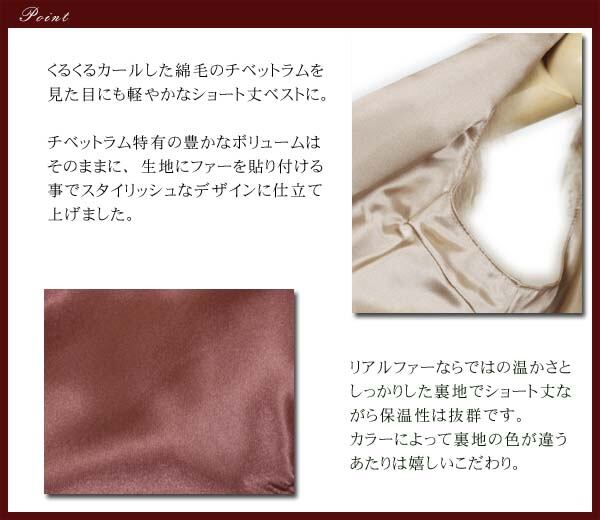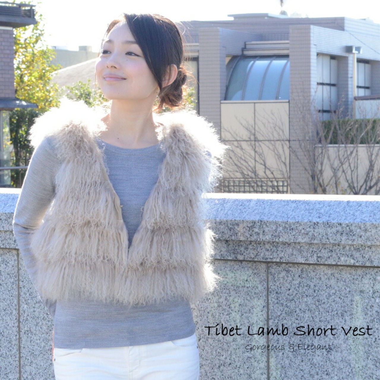 YF1523A チベットラム ファー 生地重ね ショート丈ベスト 送料無料 レディース ギフト プレゼント