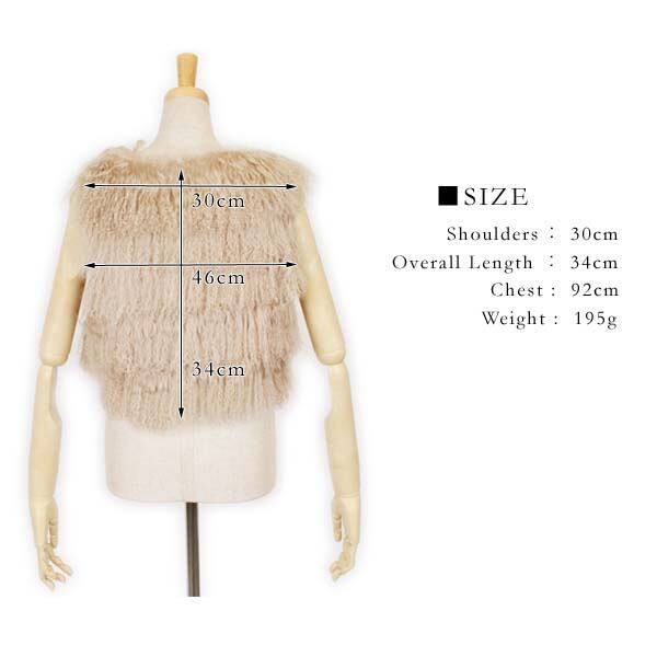 【サイズ(最大部を計測)】肩幅約30cm 着丈約34cm 身幅約92cm 【重さ】約195g 【ポケット】無し 【留め具】ホック×2 【裏地】有り 【素材】チベットラム 【生産国】中国