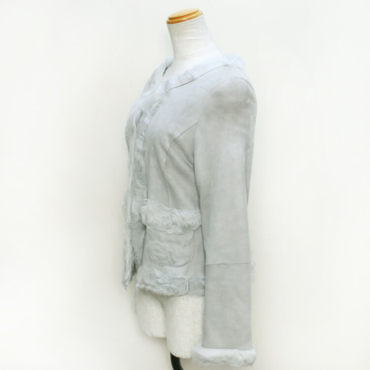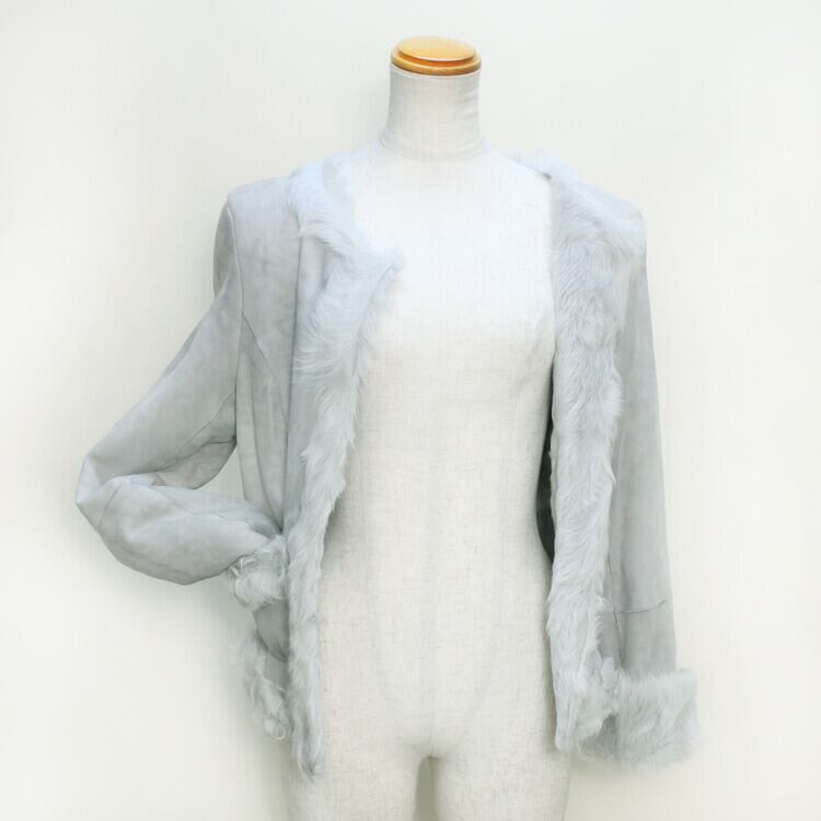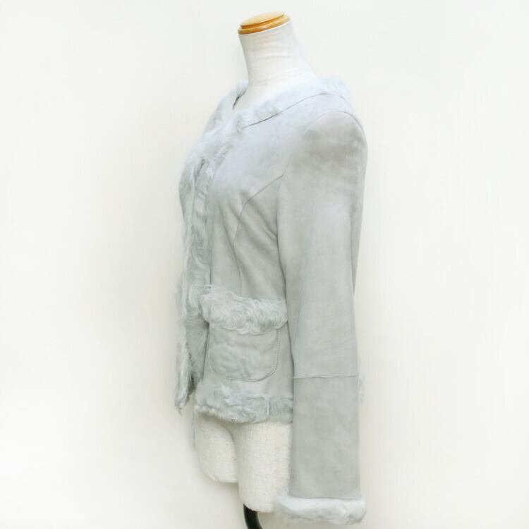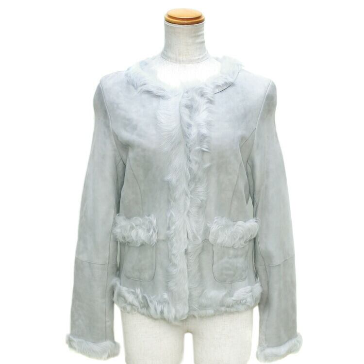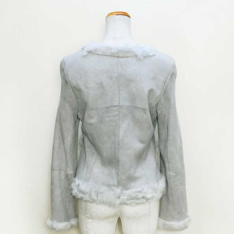 YF2025AGY1063 本革 チキャン ラム ファー Wフェイス ノーカラー ジャケット グレー Mサイズ 送料無料 レディース ギフト プレゼント