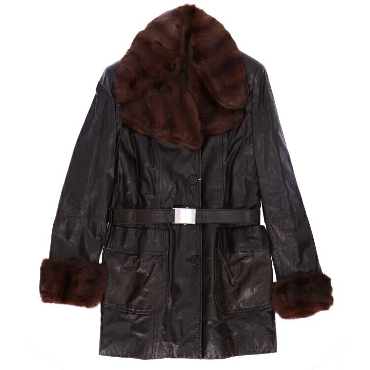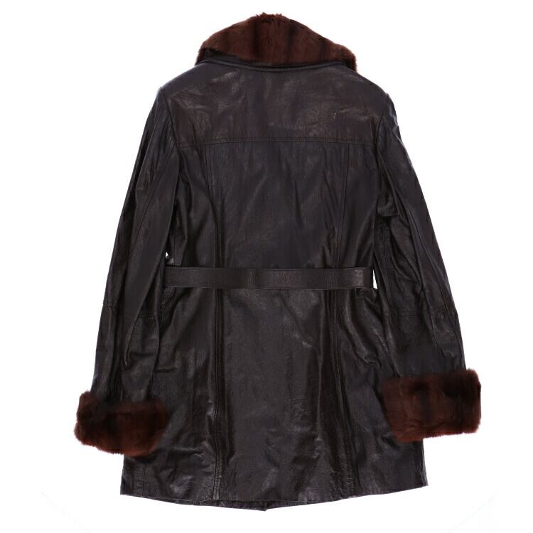訳あり ラム レザー ジャケット スキレル ファー トリム オーストリッチ型押し ナッパ ベルト付 ダークブラウン レディース ギフト プレゼント LN119EADB1016