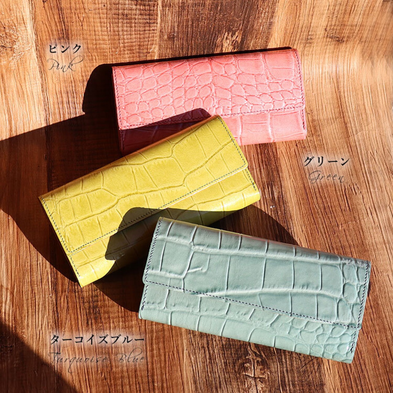 インスタグラマー様愛用 日本製 長財布 レディース 本革 エナメル クロコダイル 型押し ギャルソン フラップ 牛革 かぶせ サイフ レザー 送料無料 ギフト プレゼント