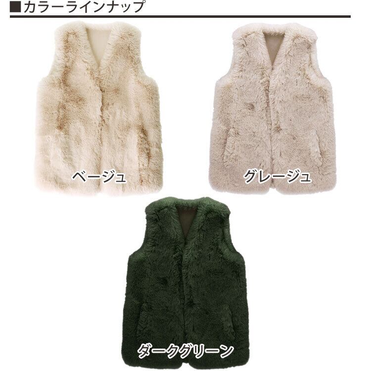 ボリューム レッキスラビット風 エコファー ベスト パーソナルスタイリスト様コラボ エコファー ベスト ジレ ロング ミドル ラビット フェイク ファー POT317