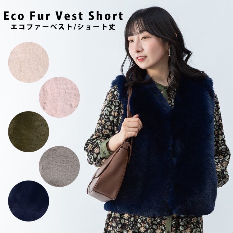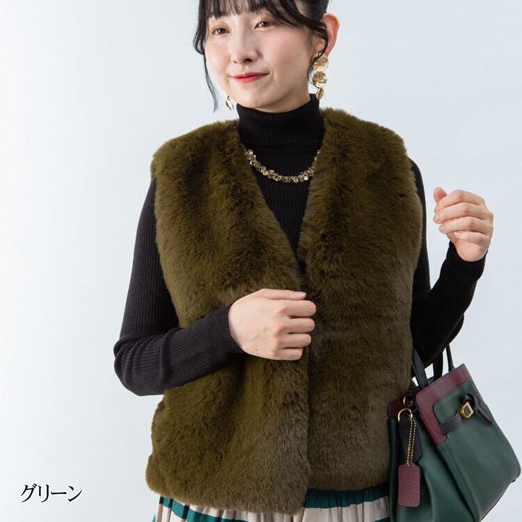 【 ボリューム レッキスラビット風 エコファー ベスト ショート丈 】 パーソナルスタイリスト コラボ エコファー ベスト ジレ ボレロ ラビット フェイク ファー 送料無料 レディース ギフト プレゼント ベージュ ピンク グレー カーキ グリーン ネイビー POT315