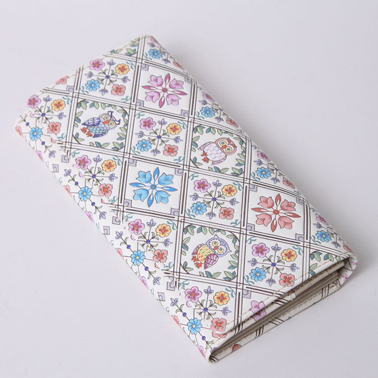 【 浅草文庫 】 友禅染 かぶせ 長財布 ふくろう 柄 ピンク サンライズ 江戸小紋 カブセ 財布 フラップ 文庫革 フクロウ 梟 不苦労 送料無料 レザー 本革 レディース ギフト プレゼント 大容量 CLKHU1