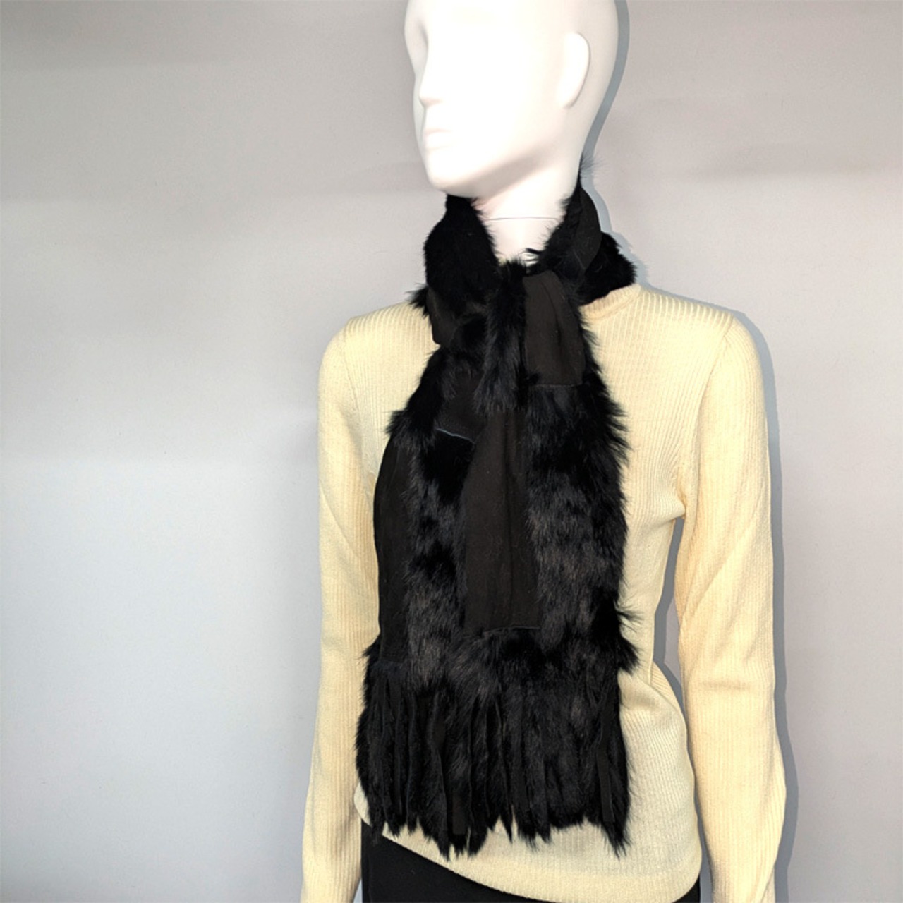 ラビット Wフェイス ファー マフラー ブラック フリンジ付 レディース ギフト プレゼント