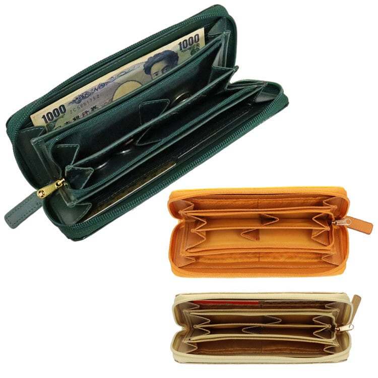 高級感あるロゴグラムで大人の上品さを演出するブランド「ルイ・ガルシア」から、コインが分けられるラウンドファスナー長財布です。艶やかなエナメル加工に、金運アップが期待できそうなカラーラインナップ。豊富な収納と4つに仕切られた便利な小銭入れがポイント。かさ張りやすい小銭を分けて収納できるので、お会計もスムーズに。ラウンドファスナー式で口が大きく開くので、中身が見やすくなっています。