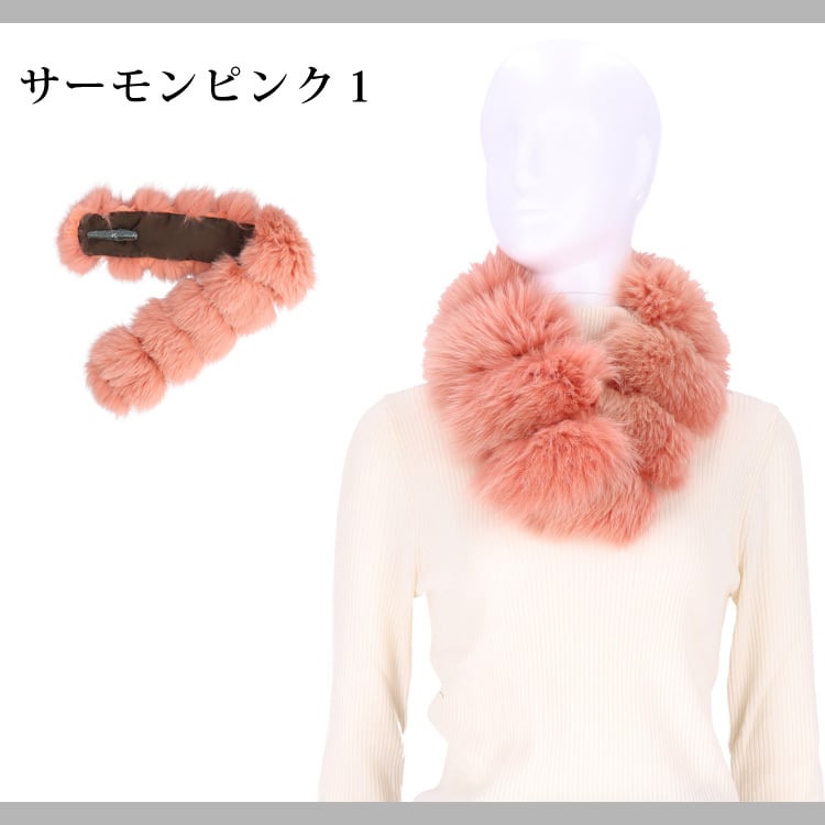 フォックス ファー マフラー リアルファー サーモンピンク 日本製 アップサイクル サステナブル レディース 毛皮 秋 冬 ストレート もこもこ ふわふわ ギフト プレゼント BLSJR2
