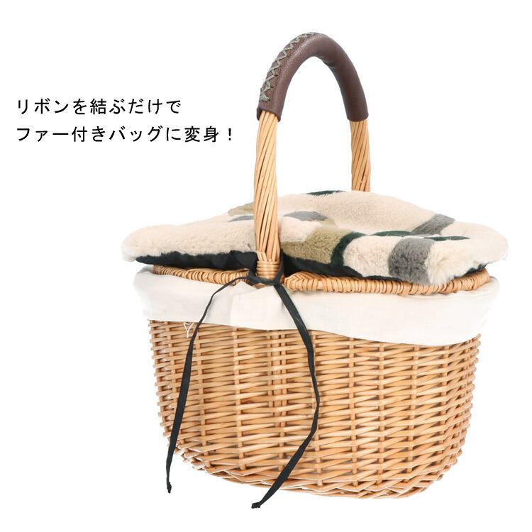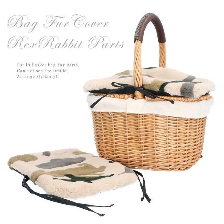 バッグ カバー 小 レッキスラビット ファー 飾り パーツ 迷彩 カモフラ柄 ※カバーのみ商品です※ アップサイクル サステナブル かごバッグ カゴバッグ アレンジ ファーカバー アクセサリー レディース ギフト プレゼント