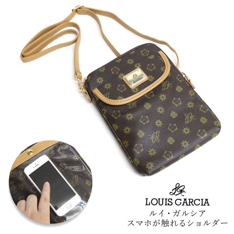 スマホショルダー 入れたまま 操作 スマホポシェット スマホポーチ スマホ 触れる レディース ミニバッグ ショルダーバッグ 斜めがけ スマートフォン 鞄 ギフト プレゼント ルイ・ガルシア ルイガルシア LOUIS GARCIA 4181 ブラウン